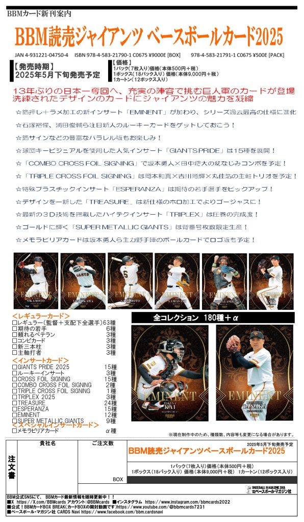 BBM 読売ジャイアンツ ベースボールカード 2025