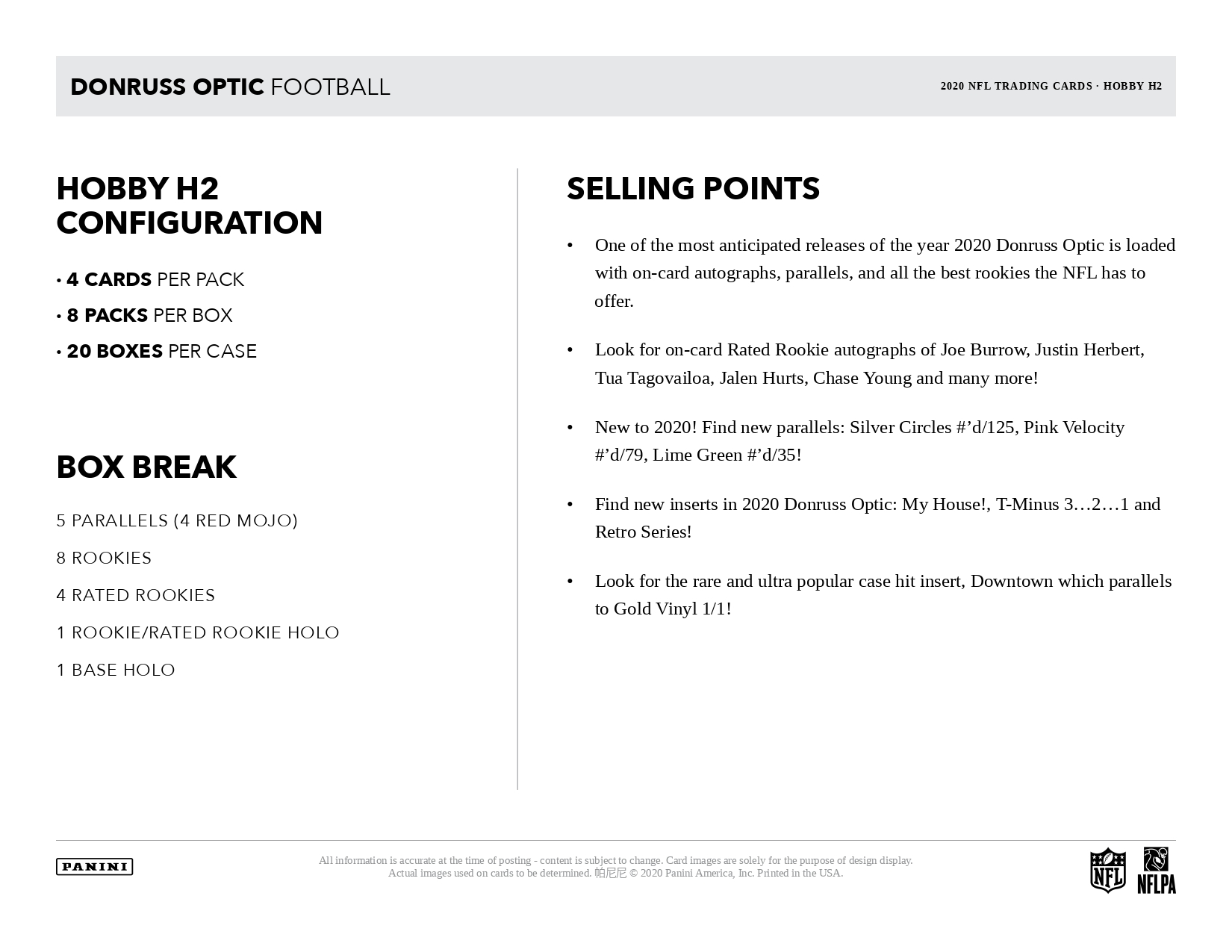パニーニ社NFL公式フットボールカードの人気元祖ブランド「ドンラス」の2020オプティクH2版!