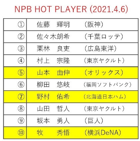🔥 NPB トレカ HOT PLAYER トレカジャーナル選定🔥(2021.4.6)【コラム/選手】