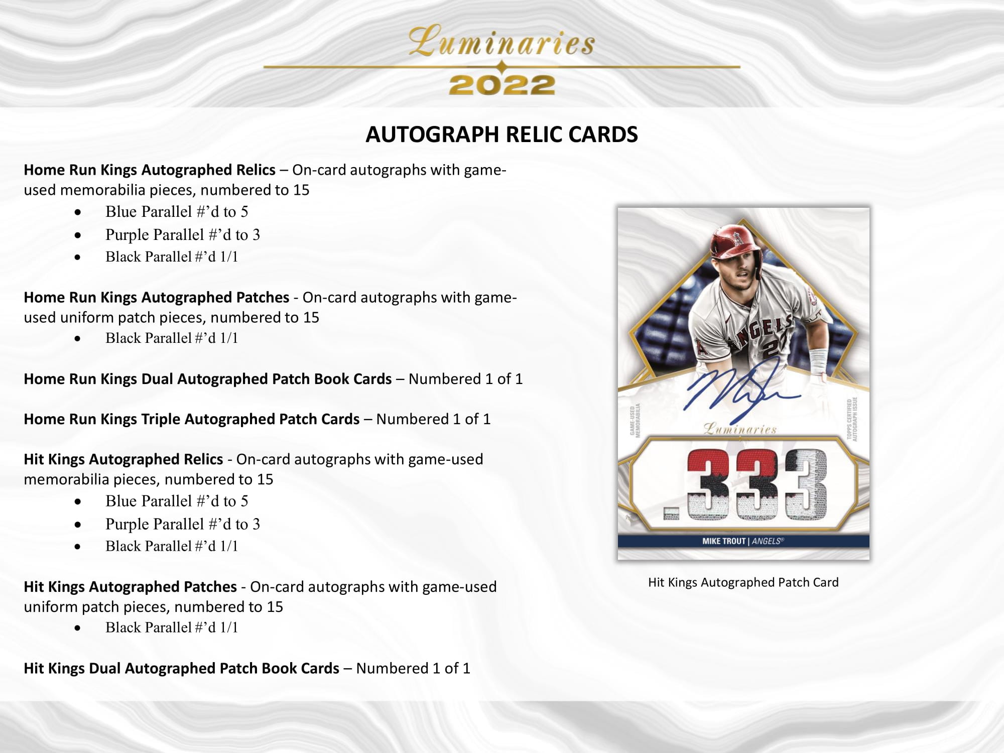 トップス社MLB公式ベースボールカードの高級ブランド「ルミナリーズ」2022年版で再登場!