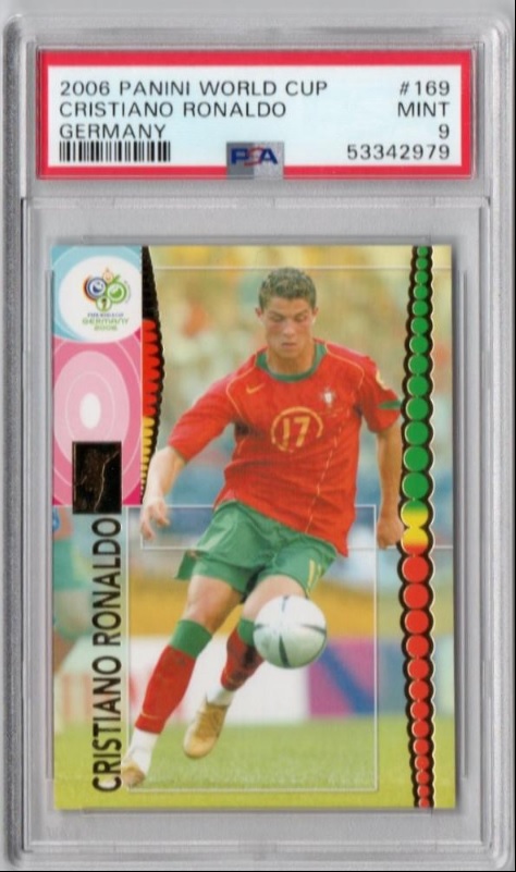 スーパースターであるロナウドのトレカは多数、作られ、高い市場価格で取引されている。歴代のW杯での雄姿もカードになっている。