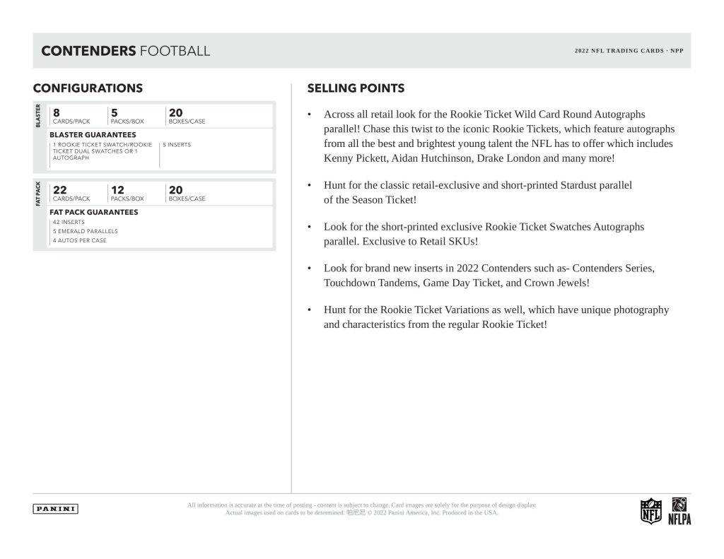 パニーニ社NFL公式フットボールカードの人気ブランド「コンテンダース」2022年版からファットパック版が登場!