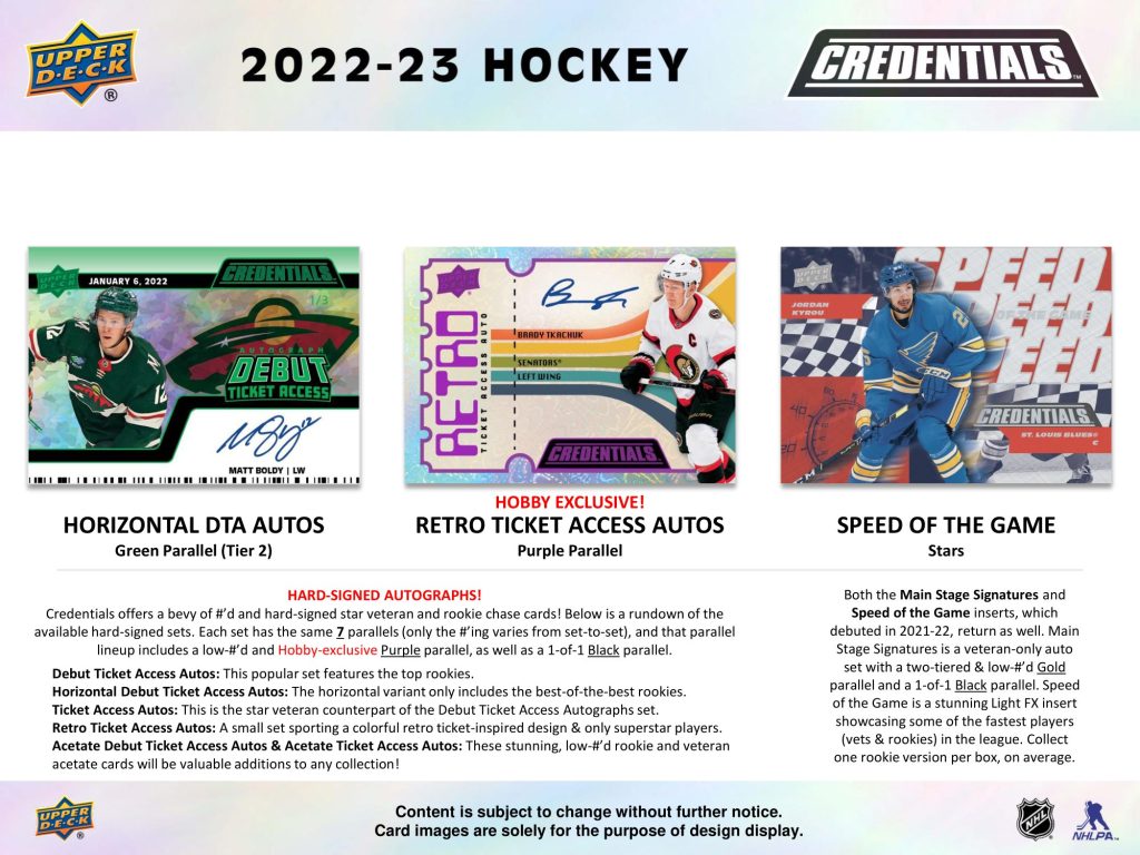 NHL 2022-23 UPPER DECK CREDENTIALS HOCKEY HOBBY