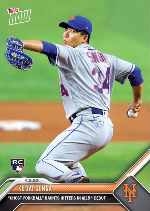 WBCの前回大会から米国でも注目を集めていた千賀だけに、TOPPS社のオンデマンドカード「Topps Now」では早速、初登板初勝利をカード化。裏面は、吉田正尚(ボストン・レッドソックス)の初カードと同様に裏面に「デビュー」ワッペンの写真を使用。さらに、いきなり、色違いのシリアルナンバー入りサインカードが封入されたパックも発売。こちらは締め切りを待たずにすぐに完売してしまった。