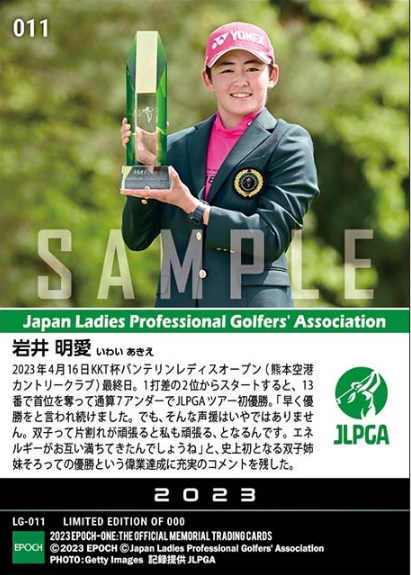 エポック社のオンデマンドカード「EPOCH-ONE」では明愛の初優勝カードが早速、作られた。千怜は昨年2勝しており、2種の優勝記念「EPOCH-ONE」が作られた他、JLPGAアワードでの敢闘賞授賞カードも人気だった。今年は明愛の番だ。