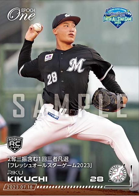 EPOCH社のオンデマンドカード「EPOCH-ONE」では、「フレッシュオールスターゲーム2023」から千葉ロッテのドラフト1位ルーキー、菊地吏玖投手のカードを制作した。