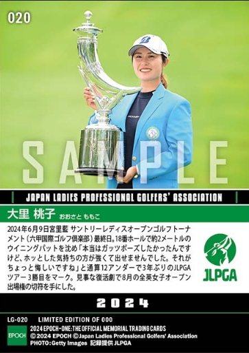 エポック社のオンデマンドカード「EPOCH-ONE」では、大里にとって2枚目、優勝カードでは初となるカードを発売。遠くを見るようなポーズのカードは、まるで、全英OPでのプレーを見据えているよう。年内に発売されるEPOCH「2024 JLPGA Official Trading Cards TOP PLAYERS」への収録も含め、大里の今後が楽しみだ。