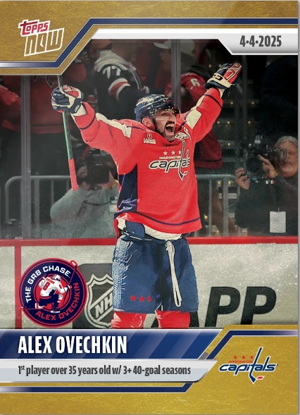 オベチキンの記録達成にTOPPS社のオンデマンドカード「TOPPS NOW」では、最新ステッカーを発行。NHLカードの制作・販売の権利を持つUPPER DECK社のオンデマンドカード、パック商品よりいち早く、記念のコレクションアイテムを市場に送り出した。通常の「TOPPS NOW」と同様に抽選でラッキーカードとして、シリアルアンバー入りのパラレル版も当たる仕様になっている。