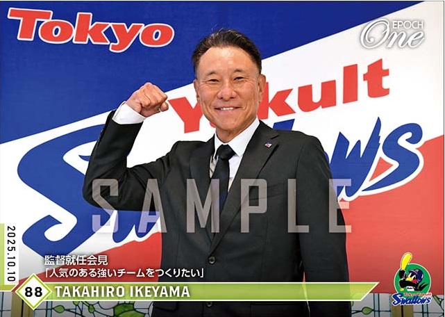 エポック社のオンデマンドカード「EPOCH-ONE」では、ファンの前に登場する前に、カードで池山新監督の笑顔をファンに公開した。現役時代はスター選手としてトレーディングカードも多かった。「応援してくれるファンがたくさんいますので、ワクワクする野球をしていきたい」その言葉が実践されれば、池山新監督自身も来季は、「エポワン」にも何度も登場しそうだ。