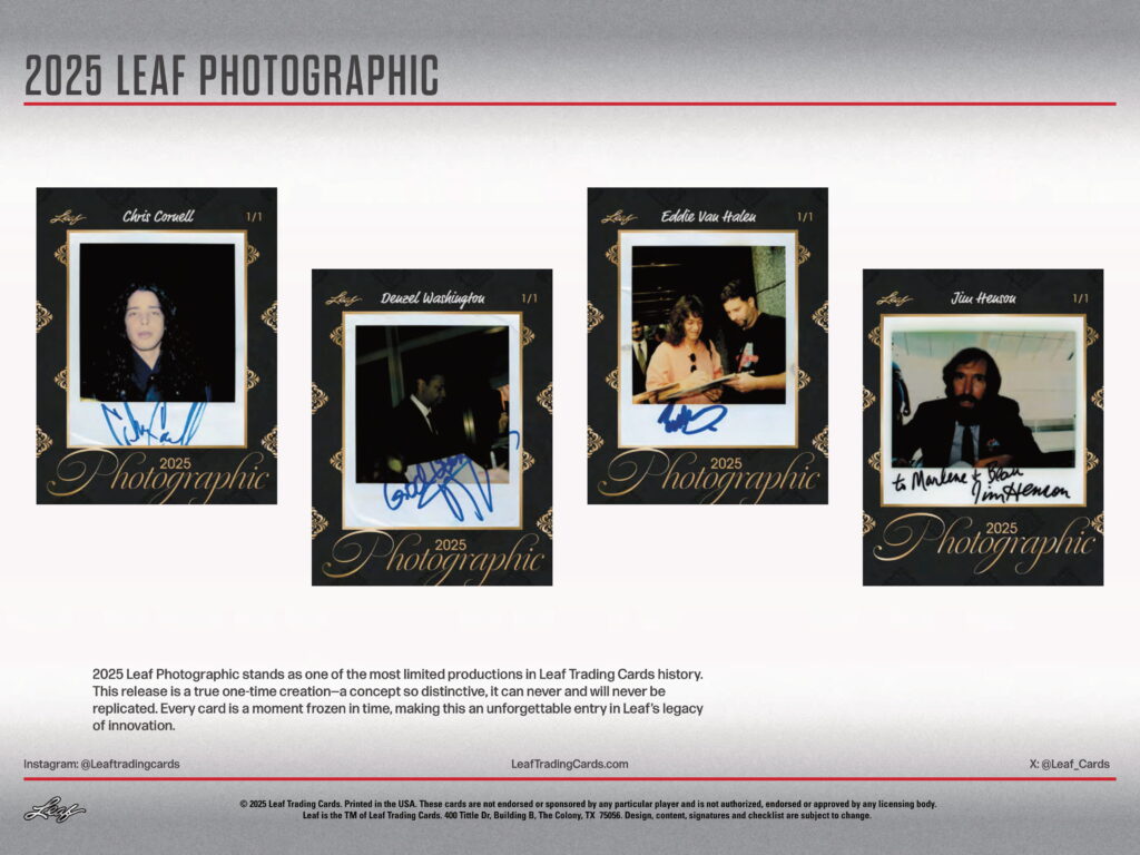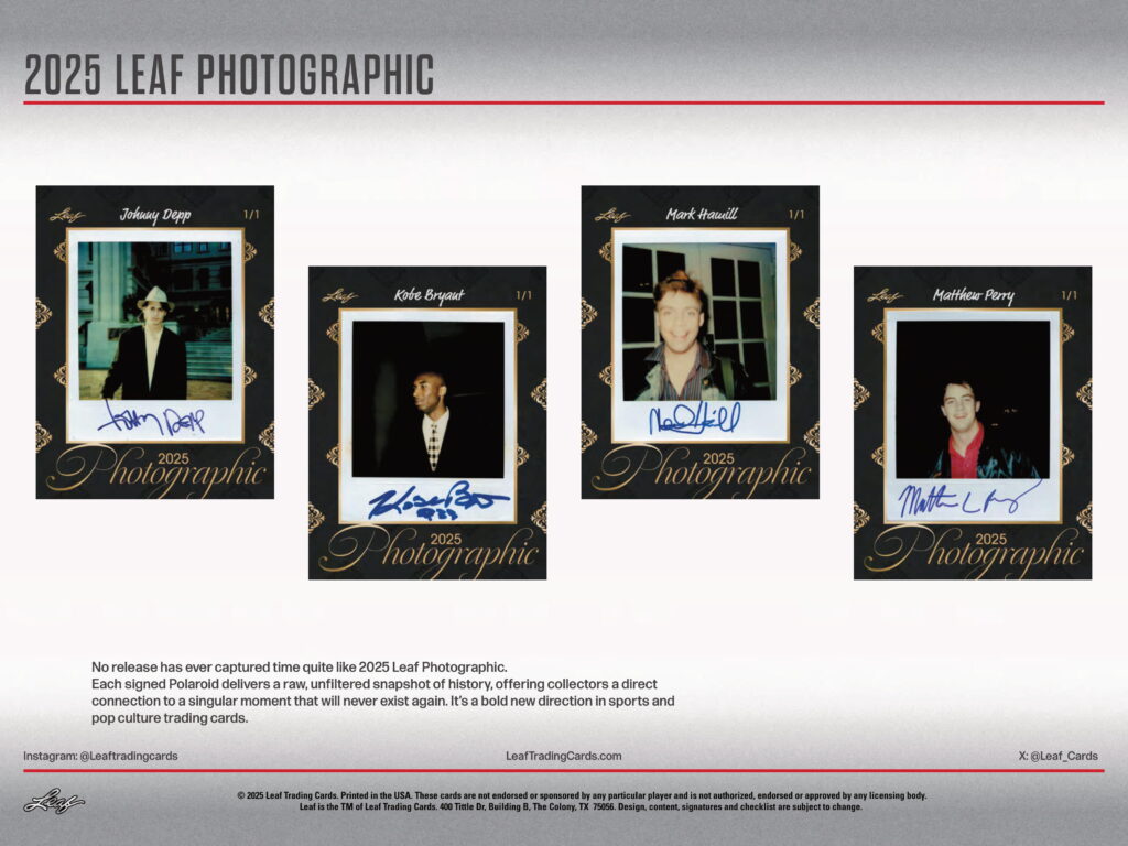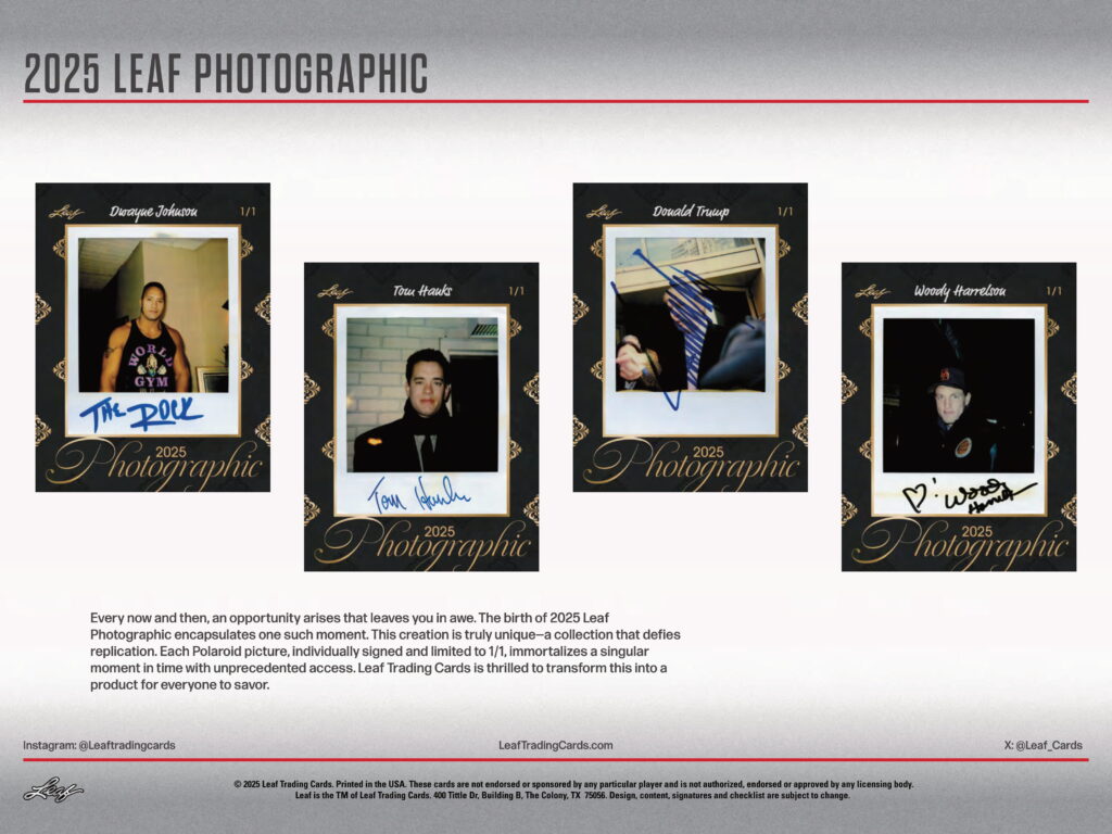 誰もが知る著名人のサイン入りポラロイド写真を使用した、全て世界に1枚だけの驚くべきカードが収録!