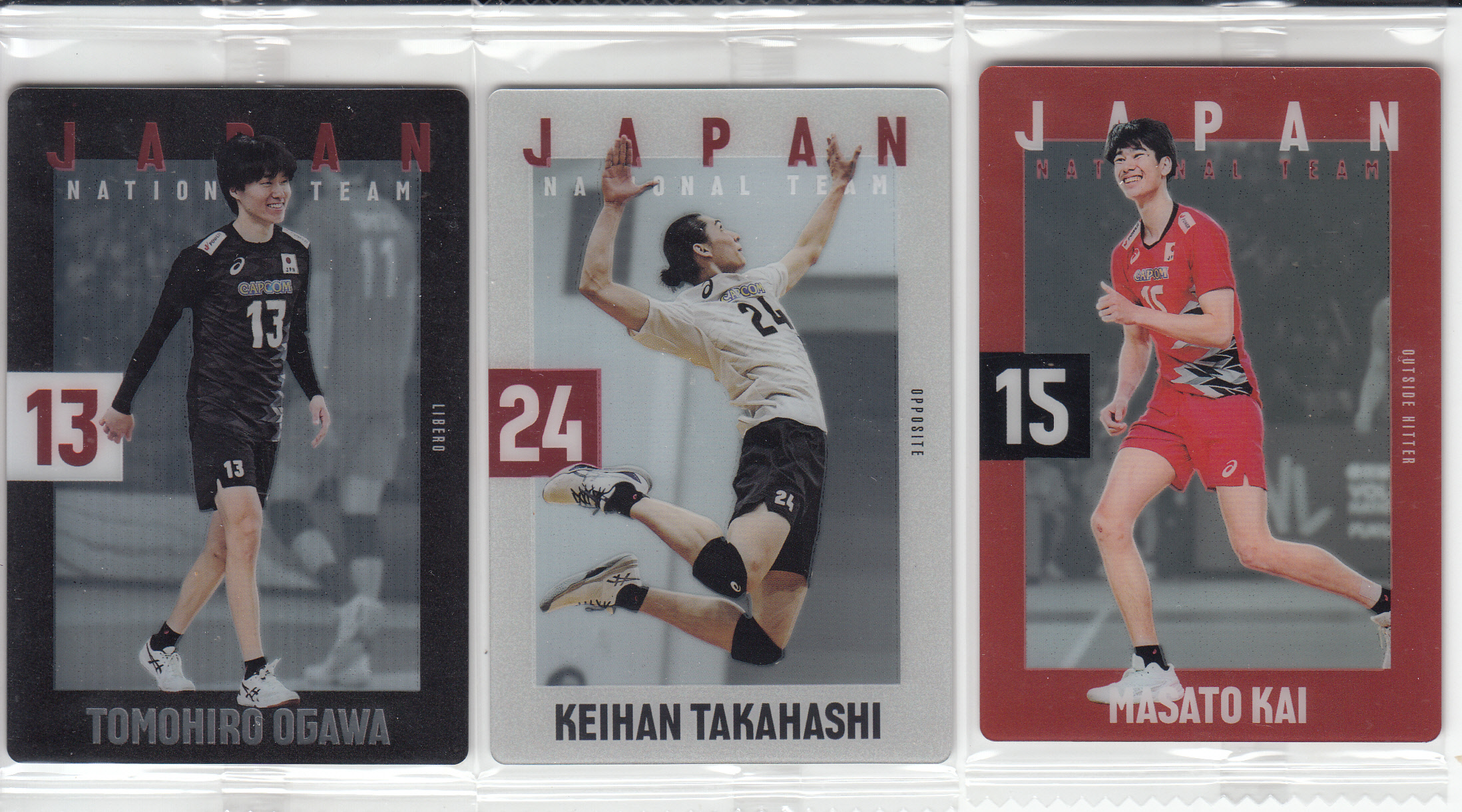 今回はその第2弾で、第1弾の仕様を踏襲しつつ、髙橋藍、小川智大、石川祐希の日本代表ユニフォーム(未着用)を挟み込んだ各150枚限定の「ユニフォームカード」も収録された。