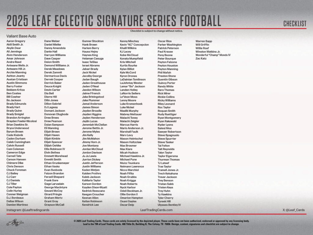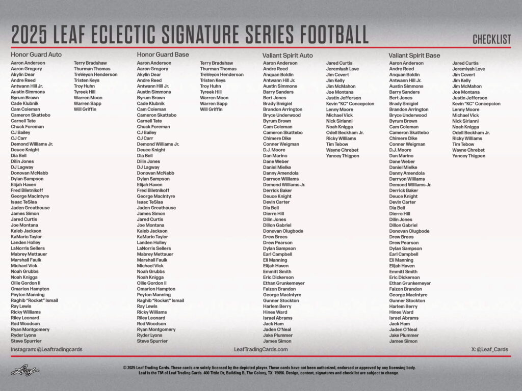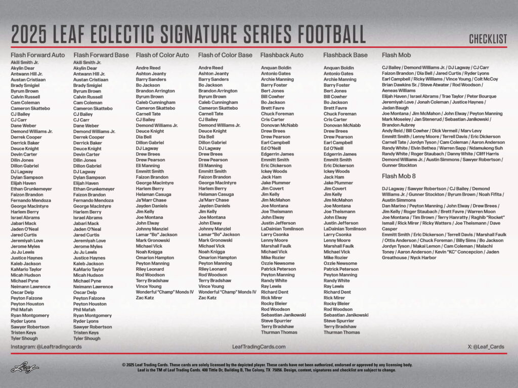 Ashton Jeanty, Barry Sanders, Bo Jackson, Cam Skattebo, CJ Carr, Dan Marino, Demond Williams Jr., Emmitt Smith, Fernando Mendoza, Gunner Olson, Ja’Marr Chase, Jeremiah Love, John Elway, Justin Jefferson, Lamar Jackson, Peyton Manning, Eli Manning, Tim Tebow, Malachi Toney, Hayden Hurst.