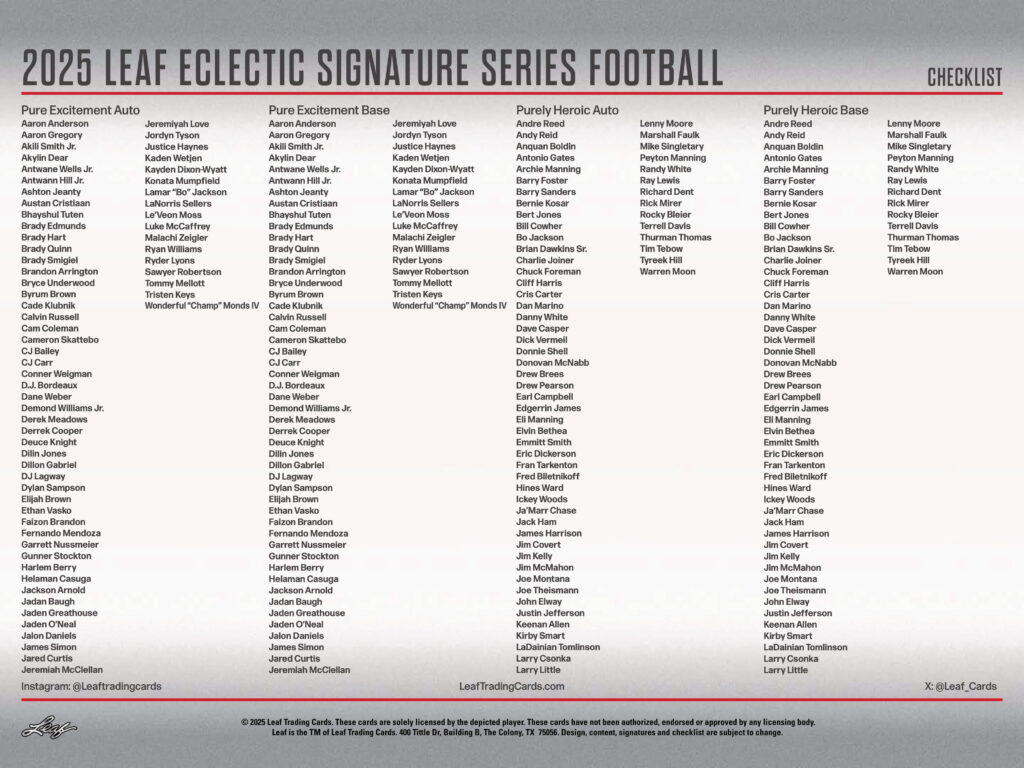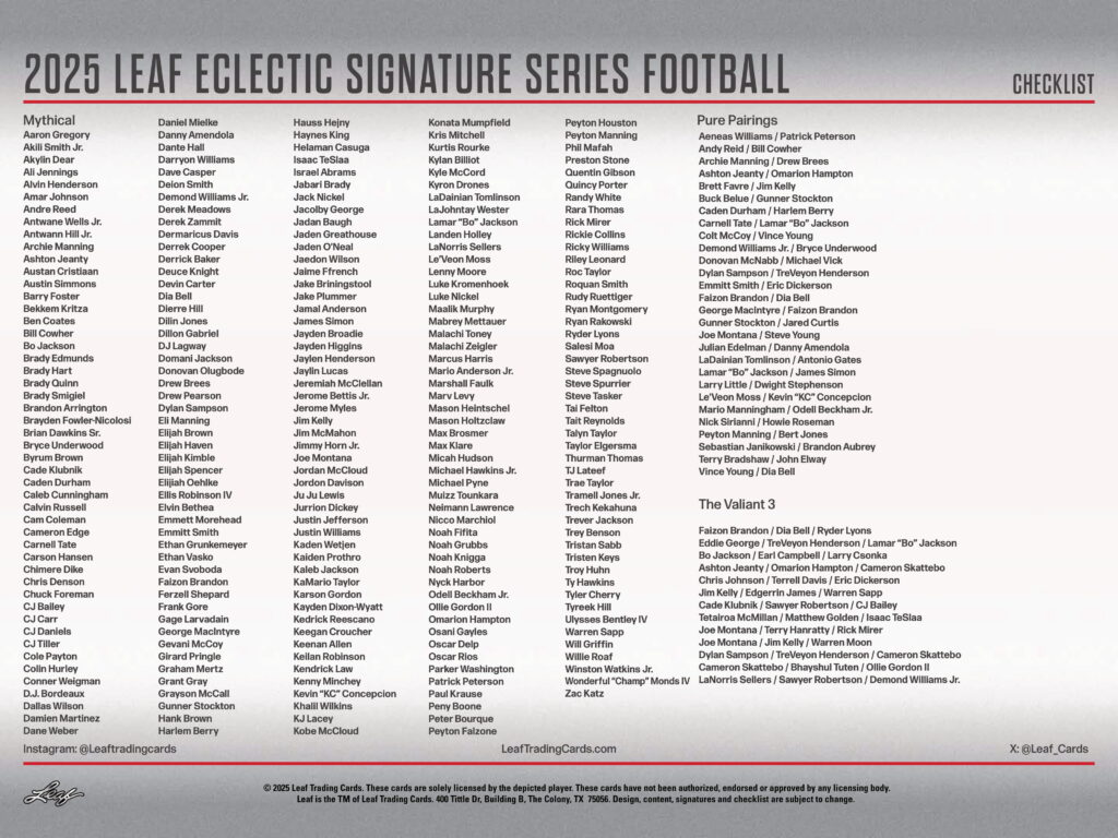 2025 LEAF ECLECTIC SIGNATURE SERIES FOOTBALL MYTHICAL