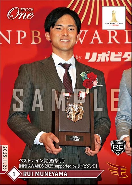 エポック社のオンデマンドカード「EPOCH-ONE」では11月26日に行われた「NPB AWARDS 2025 supported by リポビタンD」から、表彰12選手の限定トレーディングカードを発売した。受注は48時間限定で、発注枚数しか、制作されない。