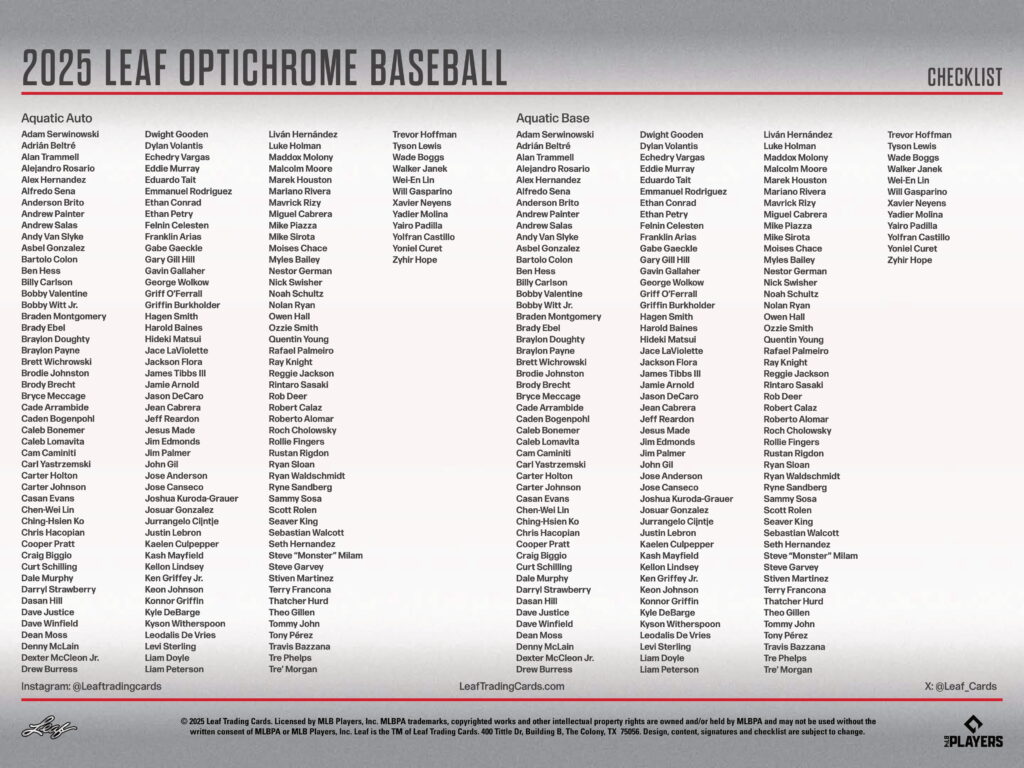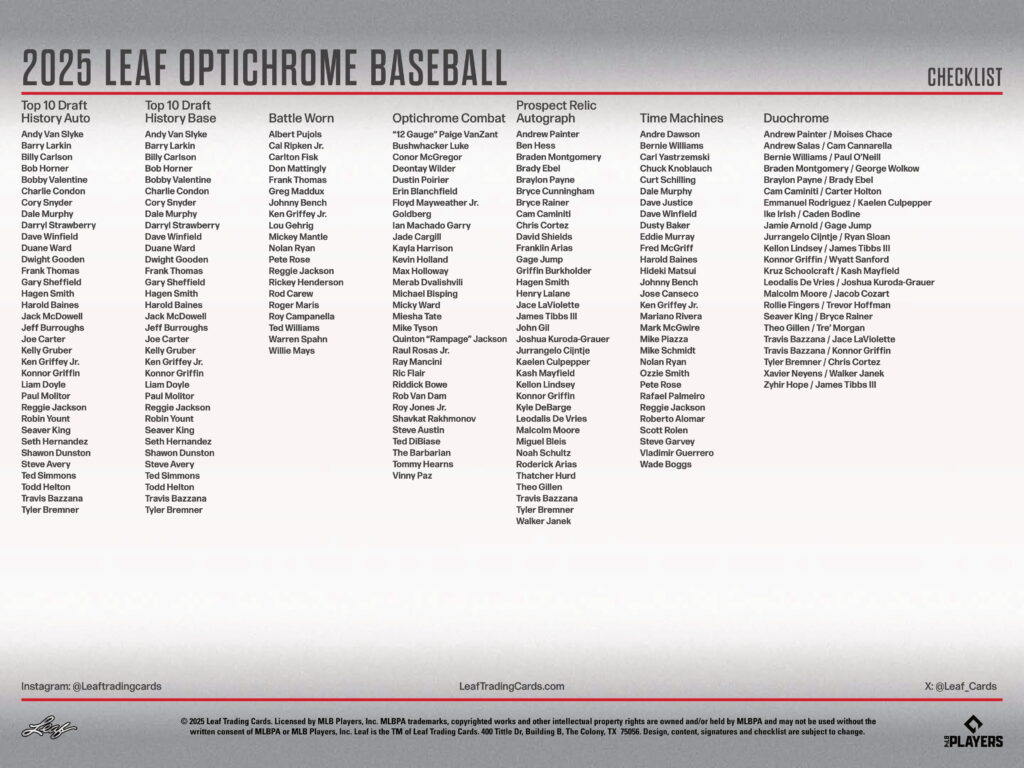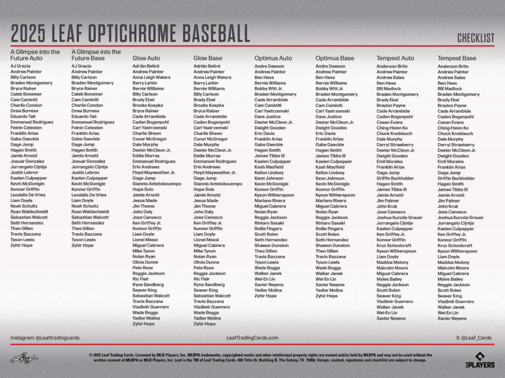 リーフ社からベースボールトレーディングカード「オプティクローム」の2025年ホビーが初登場!