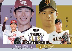 ★同じ学校出身など共通項を持つ選手同士を組み合わせたインサートカード「CLOSE RELATIONSHIP」では青山学院大6連覇のエース&四番でともにドラフト1位の中西聖輝&小田康一郎をカップリング★