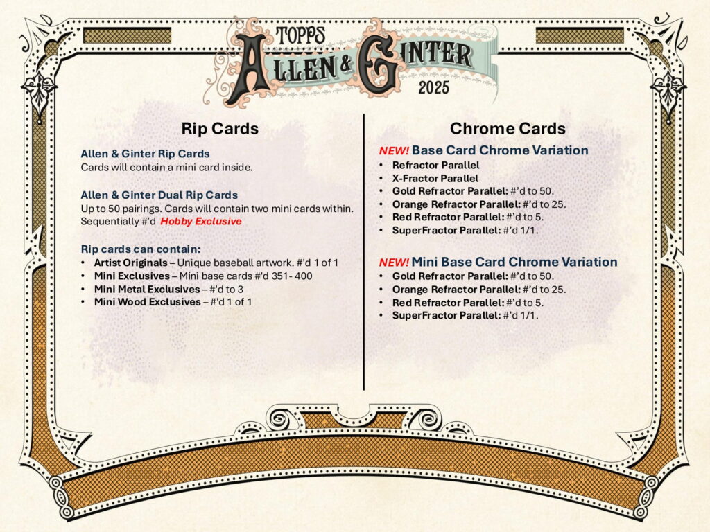 パラレル(NEW!)⇒ A&G裏面/50、番号なし/25、ブルックリン裏面/10、Topps裏面/5、A&G/1