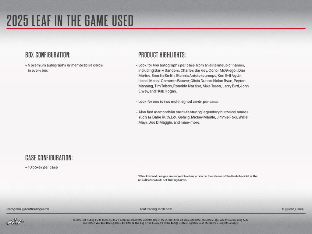 リーフ社からマルチスポーツトレーディングカード 「イン・ザ・ゲーム・ユーズド」の2025年版が登場!