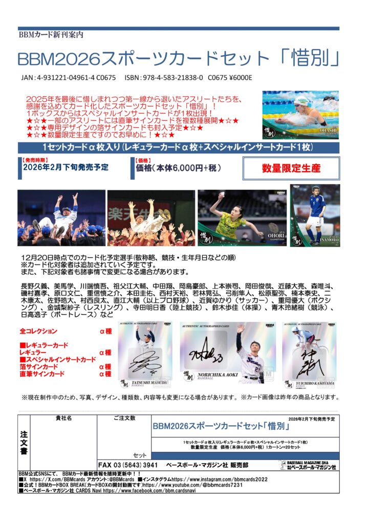 2025年を最後に惜しまれつつ第一線から退いたアスリートたちを、感謝を込めてカード化したスポーツカードセット「惜別」!