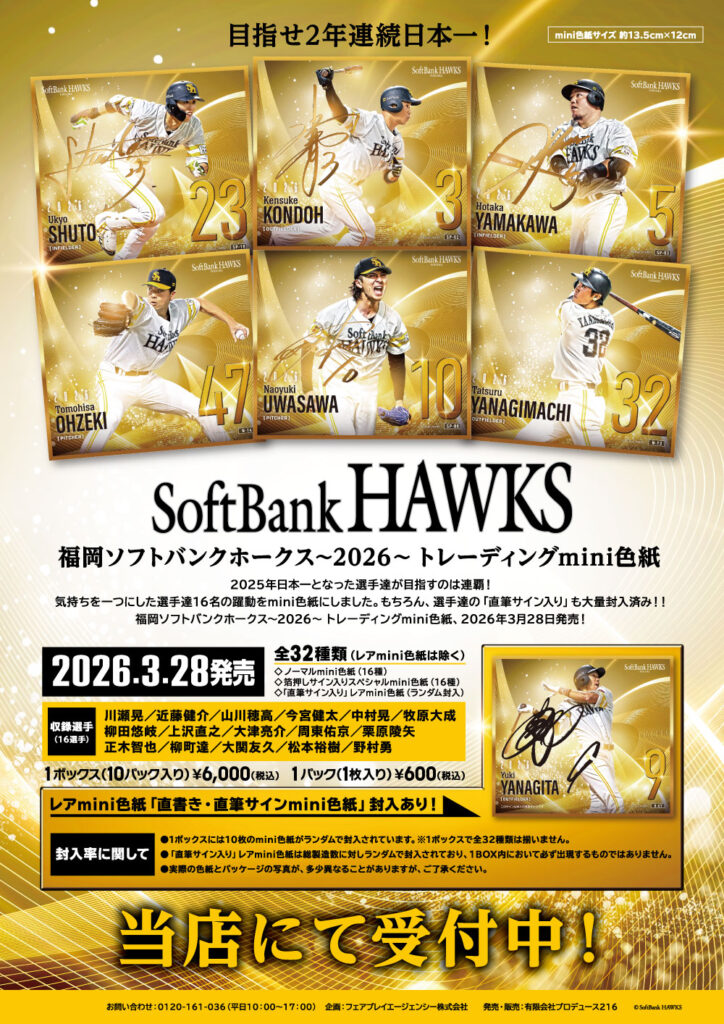 福岡ソフトバンクホークス~2026~ トレーディングmini色紙、2026年3月28日発売!