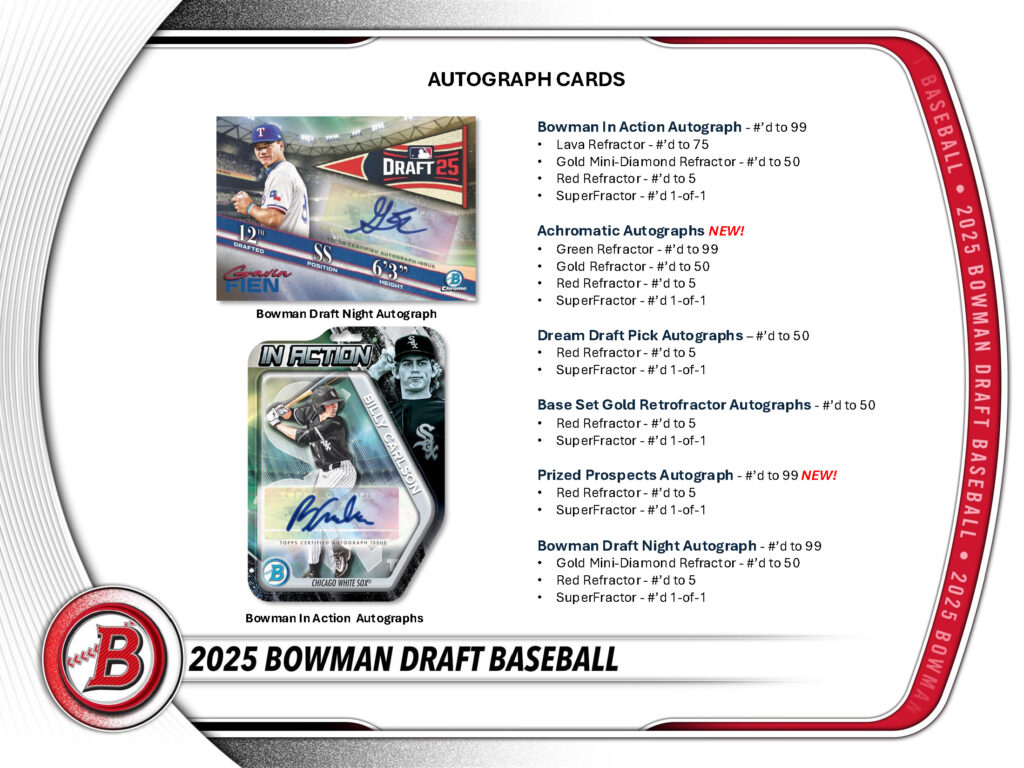Prized Prospects (NEW), Axis (NEW), Bowman in Action, Bowman Draft Night