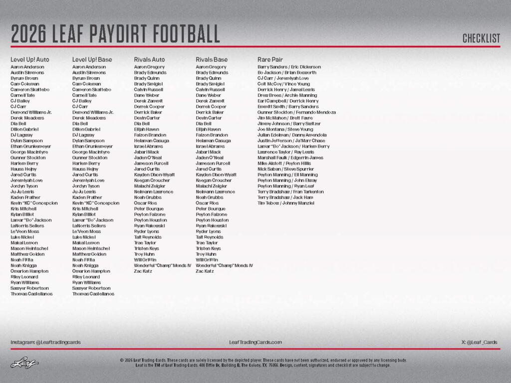 Barry Sanders, Peyton Manning, Emmitt Smith, Tim Tebow, Dan Marino, Haynes King, Malachi Tony, Fernando Mendoza, LaNorris Sellers, Justice Haynes, CJ Carr, Lamar “Bo” Jackson, 他