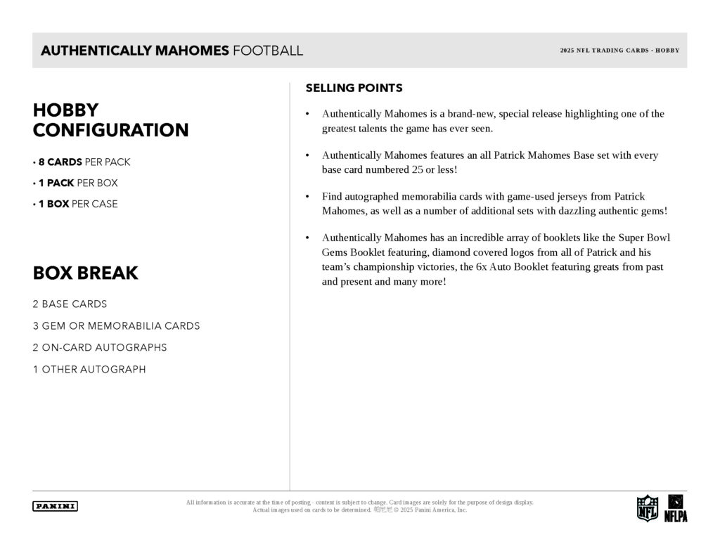 【製品情報】🏈 NFL 2025 PANINI AUTHENTICALLY MAHOMES FOOTBALL