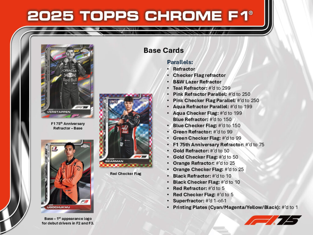 ブルー/150、グリーン/99、F1 75周年/75、ゴールド/50、オレンジ/25、ブラック/10、レッド/5、スーパーフラクター/1