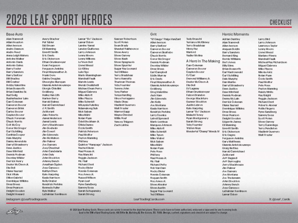 リーフ社からマルチスポーツトレーディングカード「メタル・スポーツ・ヒーロー」の2026年版!