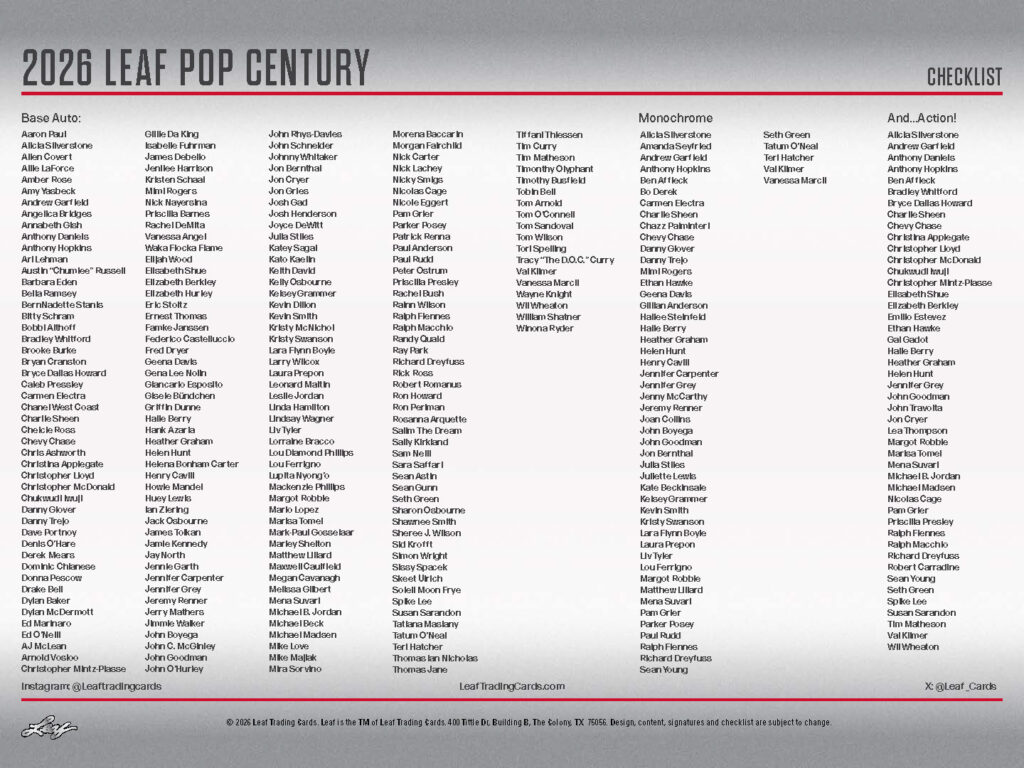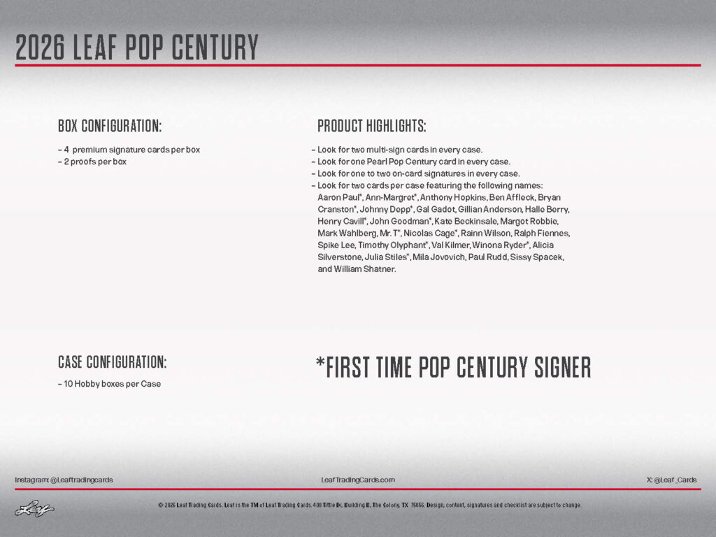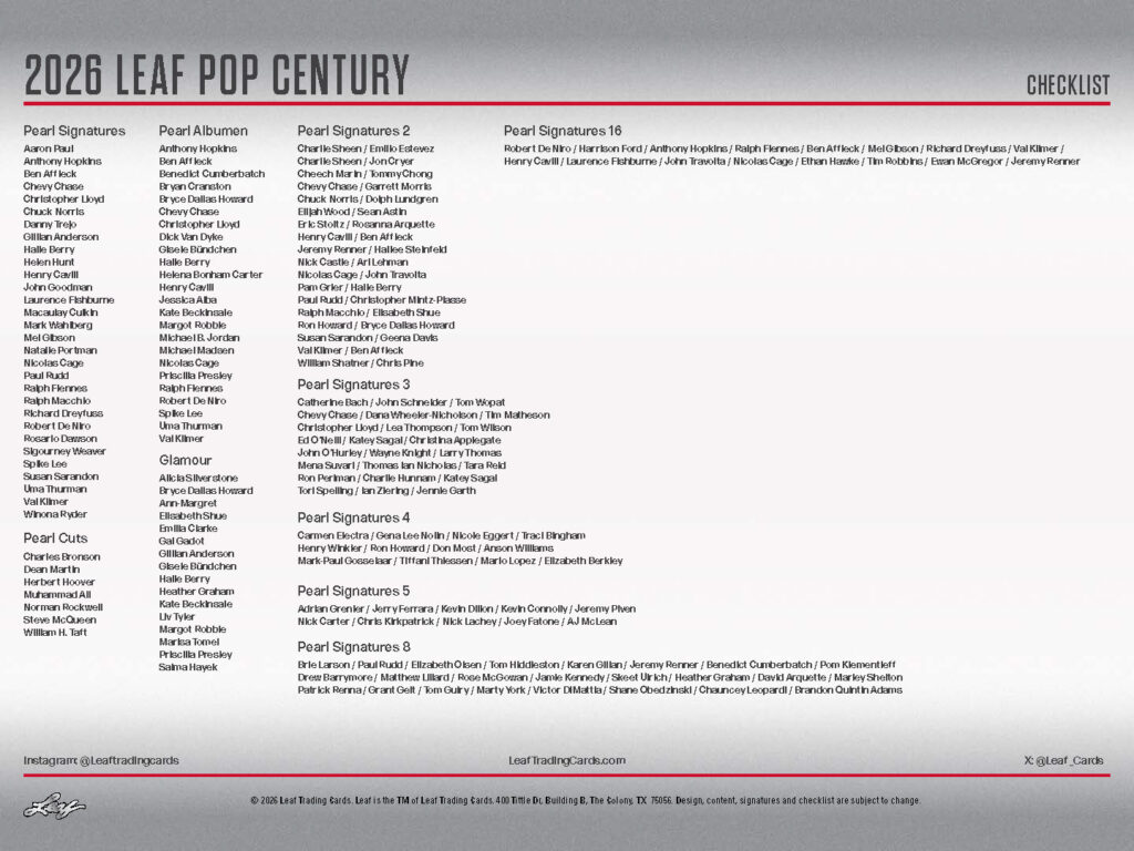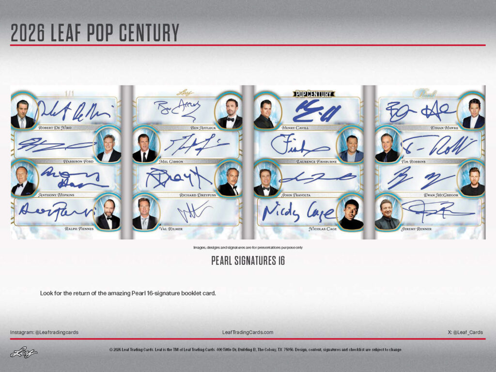 リーフ社の人気セレブリティを多数収録したトレーディングカードシリーズ「ポップ・センチュリー」の2026年版が登場!