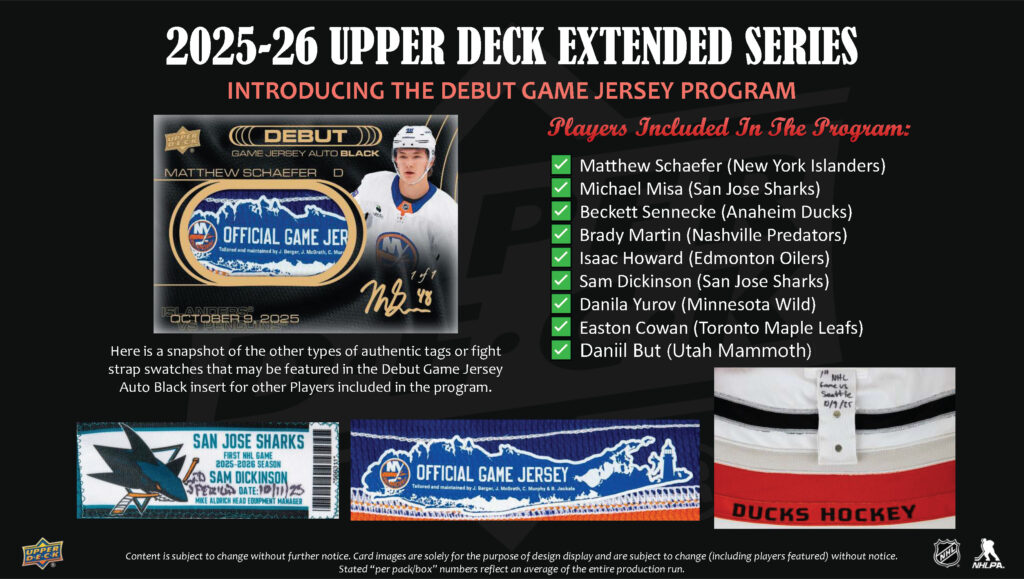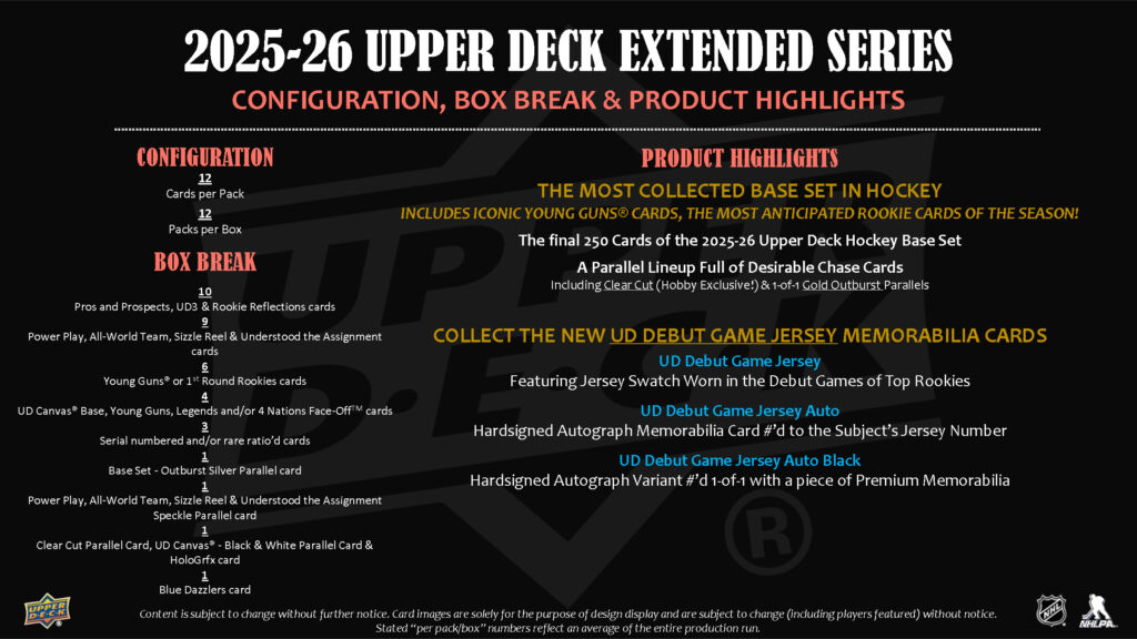 【製品情報】NHL 2025-26 UPPER DECK EXTENDED SERIES HOBBY