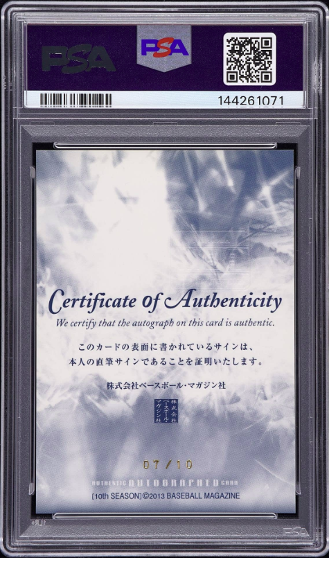 このカードが収録されていた「10th SEASON WITH HOKKAIDO」セットには、大谷翔平のルーキーカードが2種、レギュラーカードとして収録されていますが、これらは直筆サインではないにもかかわらず、PSA高評価品に関してはすでに数万円規模で取引されてきた実績があります。