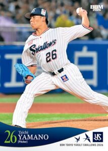 チームリーダー山田哲人を筆頭に長岡秀樹、吉村貢司郎と投打の要に加え、ドラフト1位ルーキーの松下歩叶、昨シーズンの新人王・荘司宏太に奥川恭伸や内山壮真ら、さらなる飛躍が楽しみな若手たちなど役者が揃った新生スワローズの楽しみなメンバーをカード化しました!