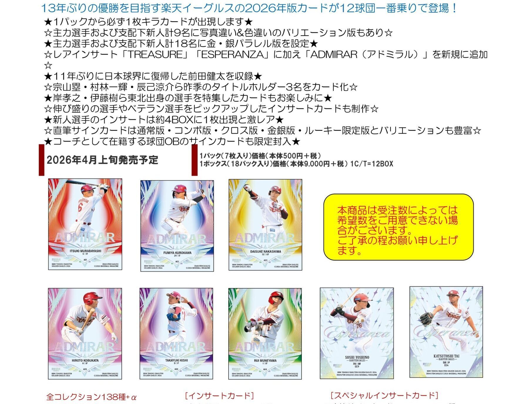 『BBM東北楽天ゴールデンイーグルスベースボールカード2026』