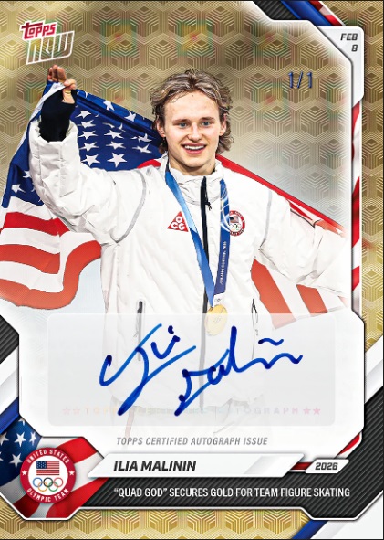TOPPS社のオンデマンドカード「TOPPS NOW」では、ミラノ・コルティナオリンピックのカテゴリーでカードを発行。マリニンの初の「TOPPS NOW」も登場した。団体のメンバーと表彰台に上がったものと、個人でも作られ、レギュラーカードは表彰式での笑顔のものだが、購入者に抽選で当たる「LUCKY HIT」には1 of 1のサインカード、バックフリップのイメージバリエーションも企画された。「2026 TOPPS Chrome U.S.Winter Olympics」でもマリニンのカードは人気で「ebay」などでも高額で取引されている。
