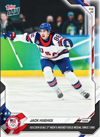 TOPPS社は、最近のオンデマンドカード「TOPPS NOW」の発行枚数を発表。ミラノ・コルティナオリンピックのアイスホッケー男子の決勝で「ゴールデンゴール」を決めたジャック・ヒューズ(ニュージャージー・デビルス)の「TOPPS NOW」を332,447枚、印刷したことが明らかになった。