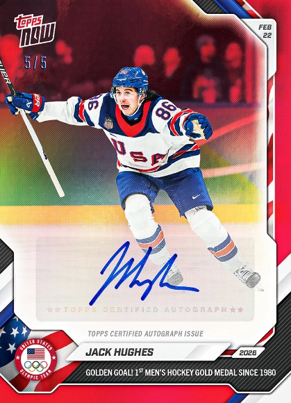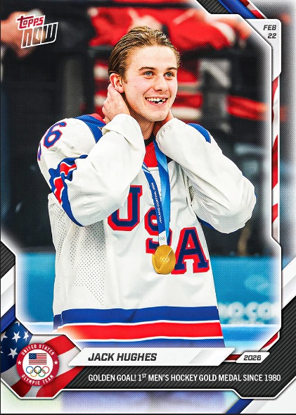 TOPPS社ではオンデマンドカード「TOPPS NOW」でヒューズのカードを制作。NHLのトレーディングカードの制作・販売の権利はUPPER DECK社がもっているため、TOPPS社ではNHLをステッカーにしてきたが、今回はTEAM USAのカードとしてヒューズのカードを制作した。