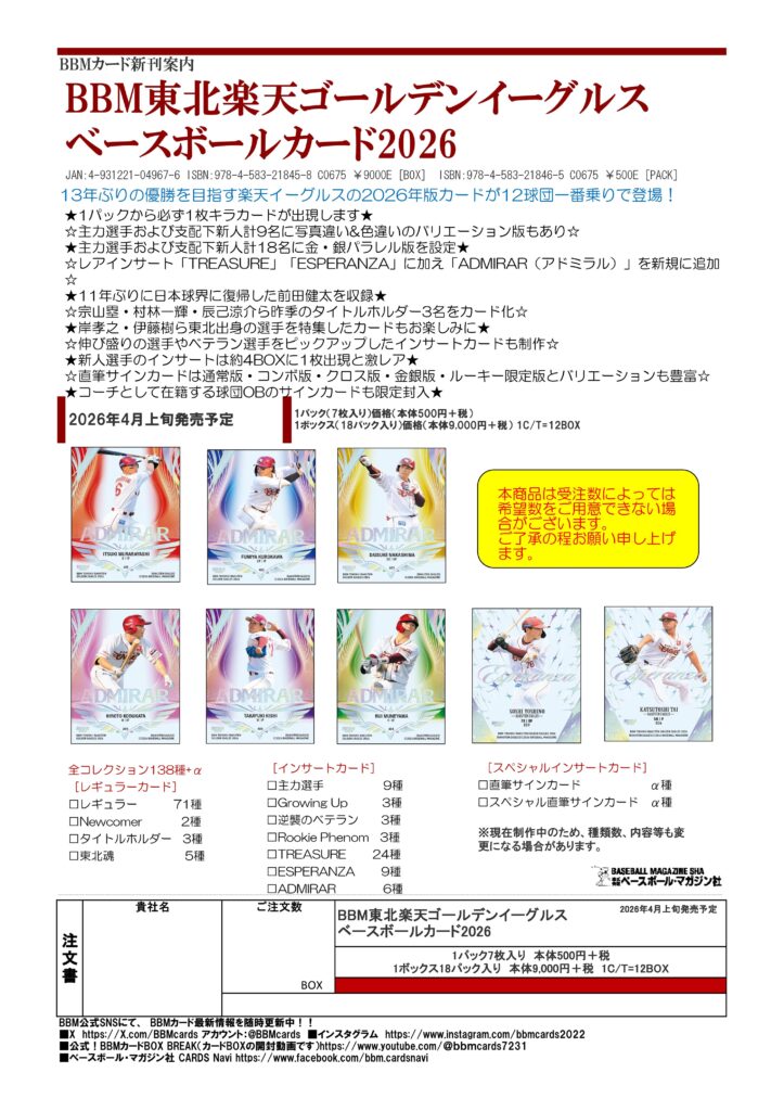13年ぶりの優勝を目指す楽天イーグルスの2026年版カードが12球団一番乗りで登場!