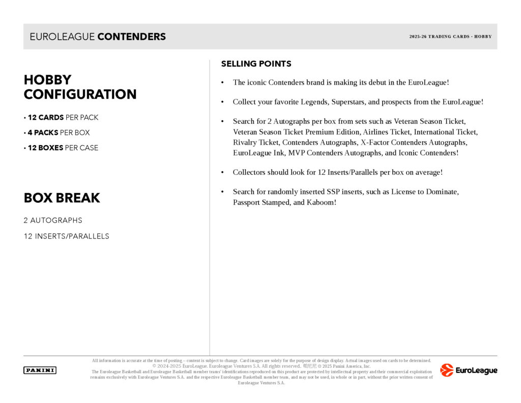 パニーニ社からEuroLeague公式バスケットボールカード 「コンテンダース」の2025-26年版が初登場!