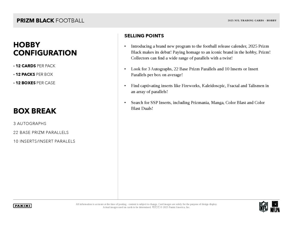 NFL 2025 PANINI PRIZM BLACK FOOTBALL HOBBY