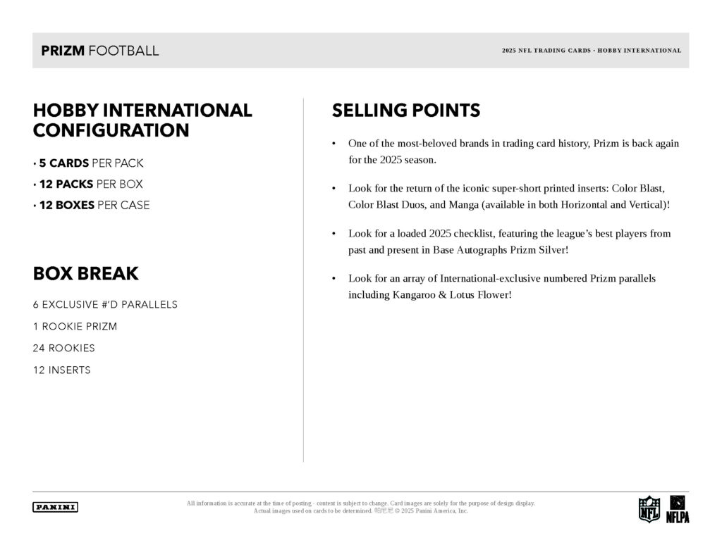トレカ史で最も愛されているブランドの1つ、「プリズム」の2025年ホビーインタナショナル版の公式NFLアメフトカードが登場!