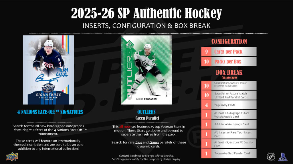 アッパーデック社NHL公式アイスホッケーカードの定番ブランド「SPオーセンティック」が2025-26年版が登場!