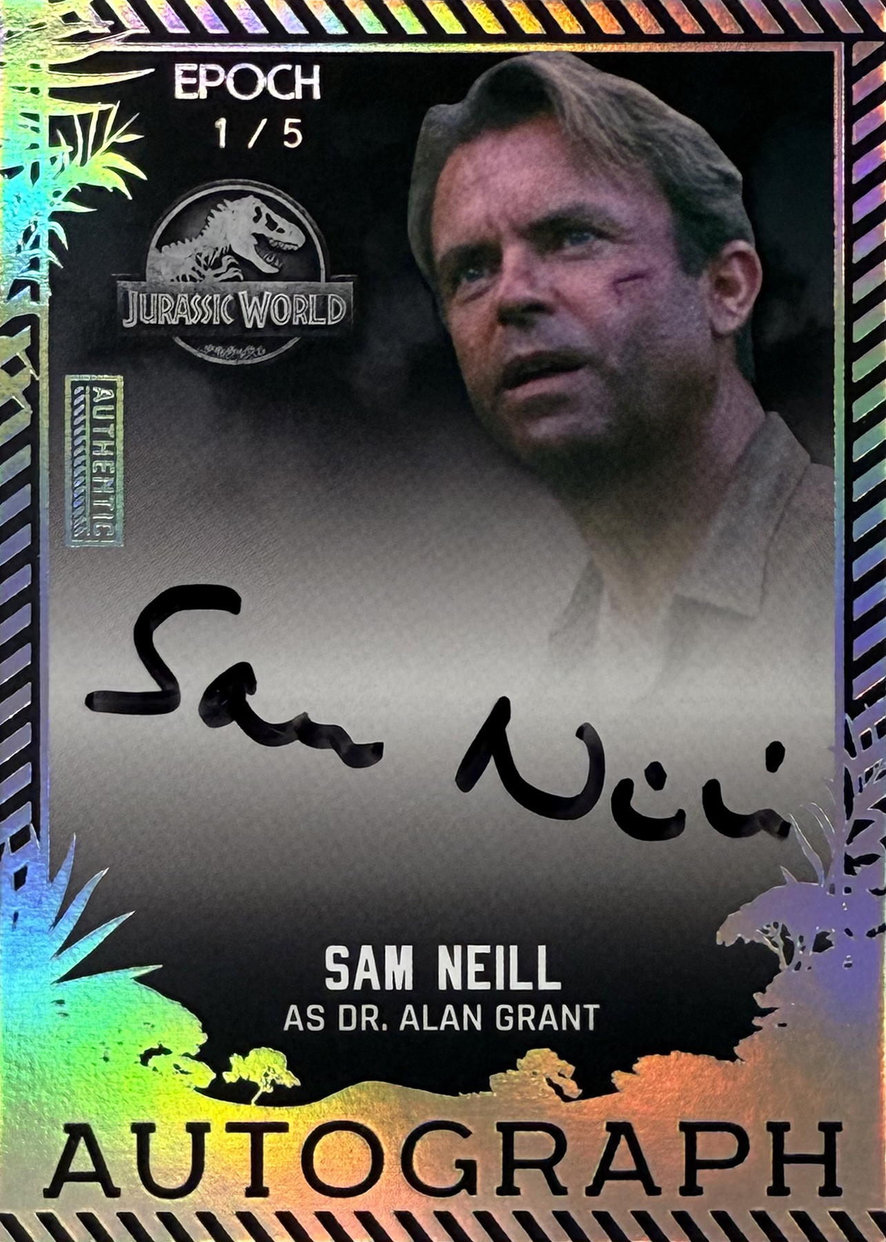 本商品で特筆すべき点は、その内容だけではありません。日本のトレーディングカードメーカーであるEPOCHが、この規模と完成度で「ジュラシック」シリーズの高級版カードを実現したという事にも、大きな意味があります。直筆サインを含む映画やエンターテインメント作品のトレーディングカードは、これまで主に海外メーカーが中心となって展開してきた分野です。とりわけ、ハリウッドの主要キャストを複数作品横断でまとめ、直書きによる直筆サイン、かつ全カードをナンバリング仕様で構成する企画は、制作・権利調整・製造すべての面で高いハードルを伴います。