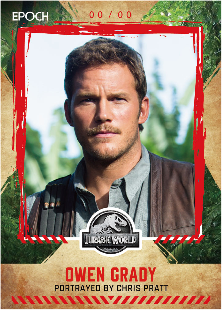 直筆サインだけでなく、レギュラーカードについてもコレクション性を高める仕様となっています。クリス・プラット(オーウェン・グレイディ)やローラ・ダーン(エリー・サトラー博士)といった主要キャラクターを収録したレギュラーカードも、すべてシリアルナンバー入り。さらにこちらにも4色の箔押しパラレルが用意されています。つまり、本商品ではすべてのカードにシリアルナンバーが入ることになります。レギュラーカードであっても、すべてが限定品です。