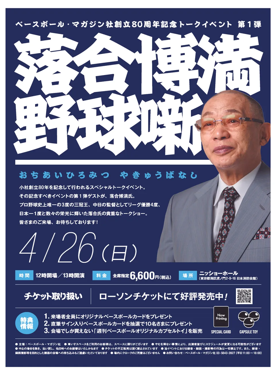 公式ページベースボール・マガジン社創立80周年記念イベント第一弾 落合博満氏トークショー「野球噺」特設ページ