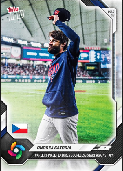 TOPPS社のオンデマンドカード「TOPPS NOW」がこの試合から選んだ選手はチェコのサトリア。残念ながら侍ジャパンからは周東も、村上もカードにならなかった。周東は第1戦の台湾戦での9回のスーパーキャッチが「TOPPS NOW」になっている。