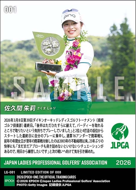 エポック社のオンデマンドカード「EPOCH-ONE」では佐久間の開幕戦Vカードの発注をスタートした。女王を祝福するギャラリーをバックにした笑顔はもはや風格さえ感じさせる。今季は何度、このスマイルと「エポワン」が見られるだろう。