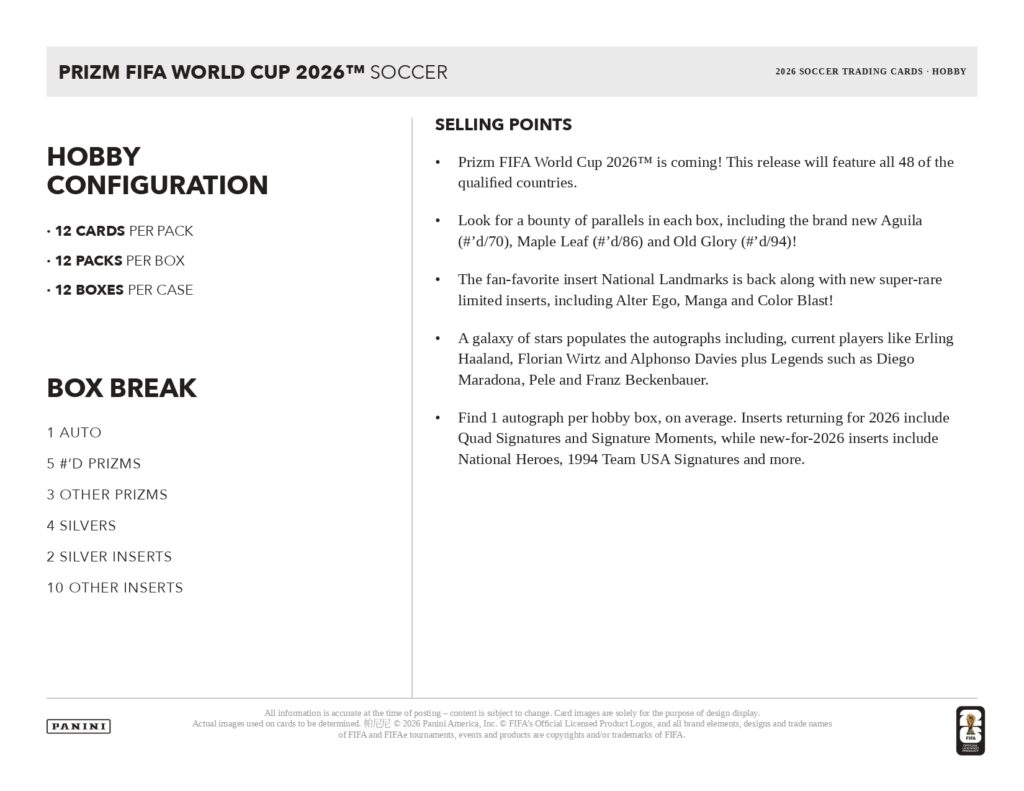 【製品情報】⚽ 2026 PANINI PRIZM FIFA WORLD CUP SOCCER HOBBY
