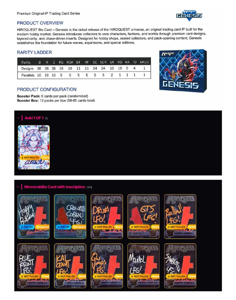 HiROQUEST Genesis は、現代のホビーマーケット向けに構築されたオリジナル・トレーディングカードIP 「HiROQUEST」ユニバースのデビュー作!