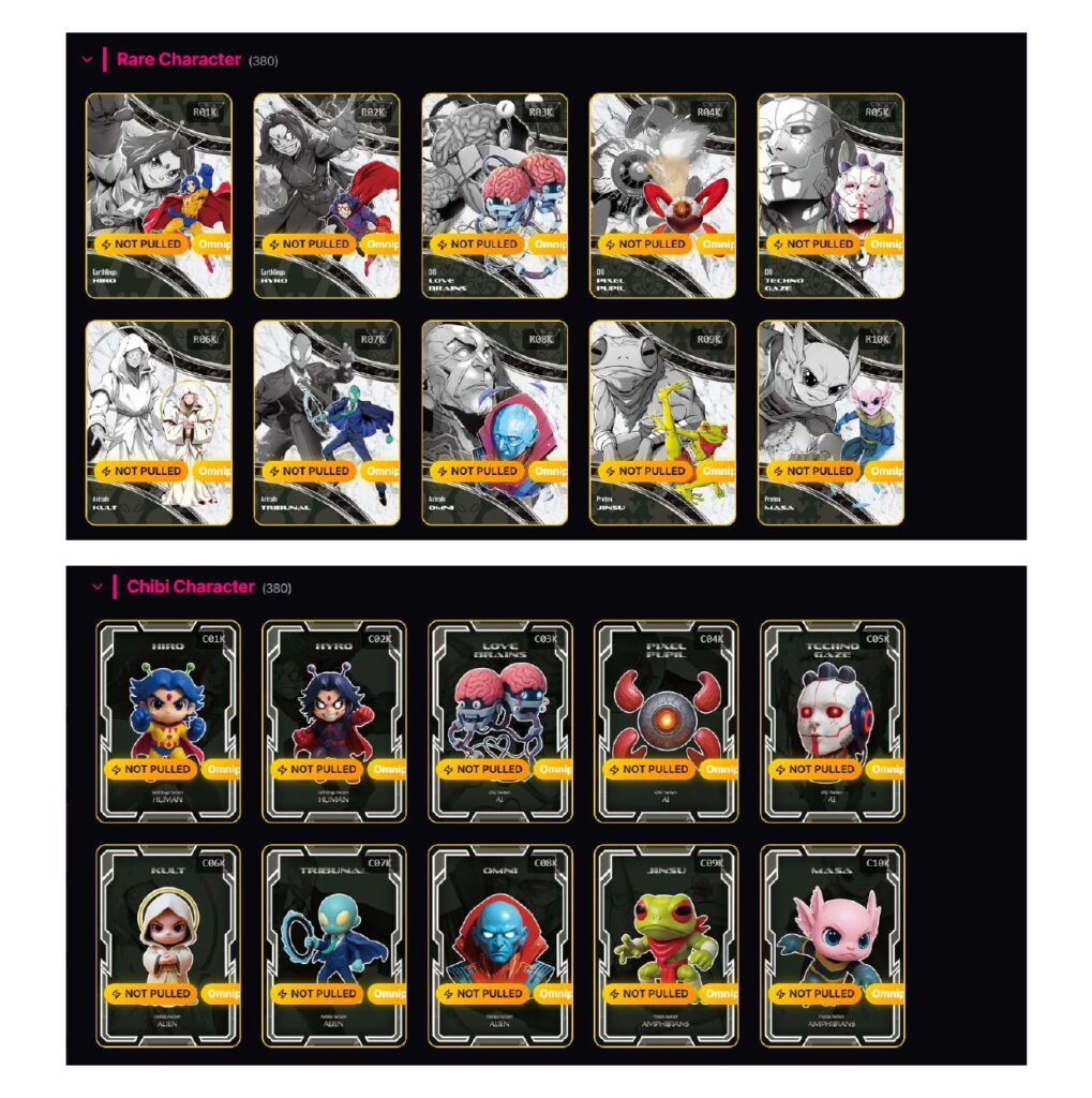 ベース、レア、チビのキャラクターカード